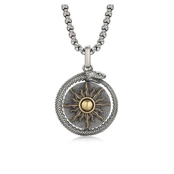 Spinning Snake Pendant Necklace Copper Ouroboros Snake Necklace Mens Jewelry Star and Moon Necklace