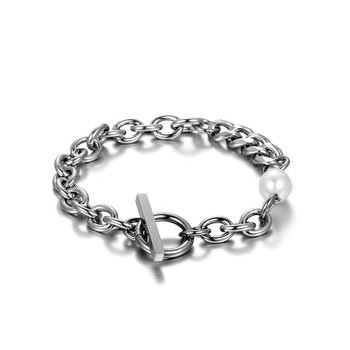 Gelang Rantai Tautan Kabel Minimalis Baja Tahan Karat dengan Gesper Toggle Gelang Mutiara Putih