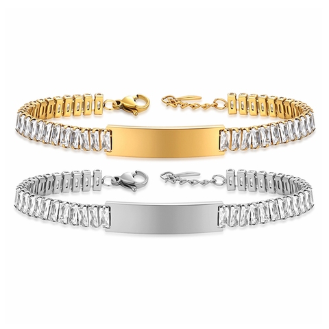 Gelang Baguette kristal wanita kustom gelang besi tahan karat kosong gelang tenis mode