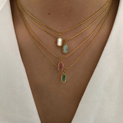 No Tarnish High Quality Stainless Steel Oval Colorful Natrual Stone Pendant Necklace 18K Gold Plated Jewelry Wholesale