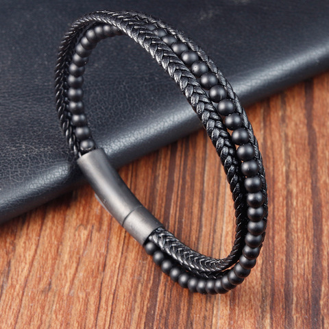 멀티 레이어 가죽 팔찌 천연석 구슬 팔찌 남자의 패션 정품 가죽 팔찌 스테인레스 스틸 걸쇠