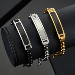 Kutu zincir bilezik erkek moda kişiselleştirilmiş boş paslanmaz çelik Bar bilezik küba bağlantı bilezik