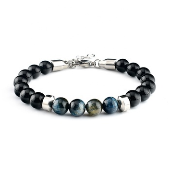 Doğal taş boncuklu bileklik kaplan gözü boncuk bileklik erkek paslanmaz çelik boncuk bilezik siyah taş takı